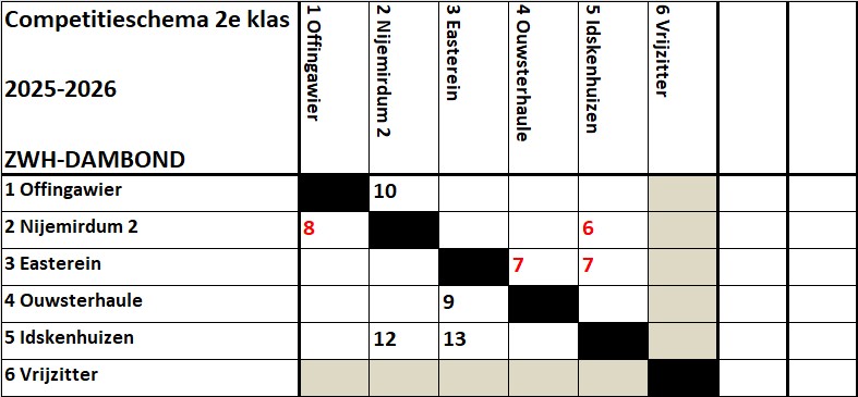 Voorlopig Competitie schema 2025-2026